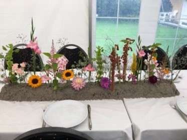 Festen blev afholdt 26 august 2023 i haven hos Aase og Steffen, som meget venligt lagde både græs og øvrige faciliteter til. Vi havde lejet et stort telt med plads til alle deltagere og havde desuden et madtelt med plads til den store grill fra Slagter Duelund og til buffeten. Johanne (Anne Marie og Kurts datter) er blomsterdekoratør og lavede de fineste borddekorationer med inspiration fra skov og strand. Alle mødte op i godt humør, vi fik sat ansigter på hinanden og snakken gik. Vi var endda så heldige at flere veteraner fra foreningens start var til stede og som Steffen bekræftede i sin tale: der er intet nyt under solen – vi diskuterer og argumenterer men i bund og grund er vi bundet sammen af det dejlige område, vi har valgt som vores fristed.